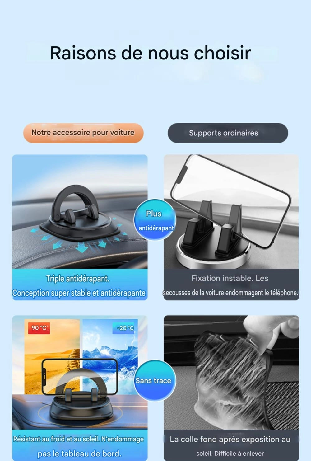 Gardez les yeux sur la route, votre téléphone reste parfaitement en place.